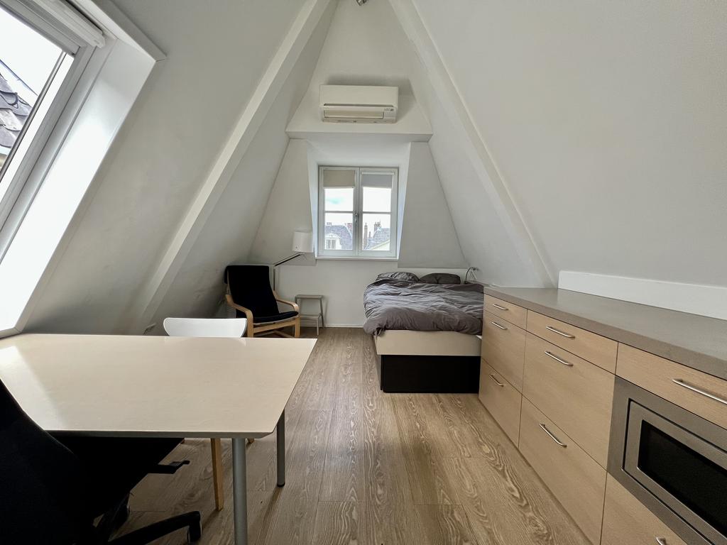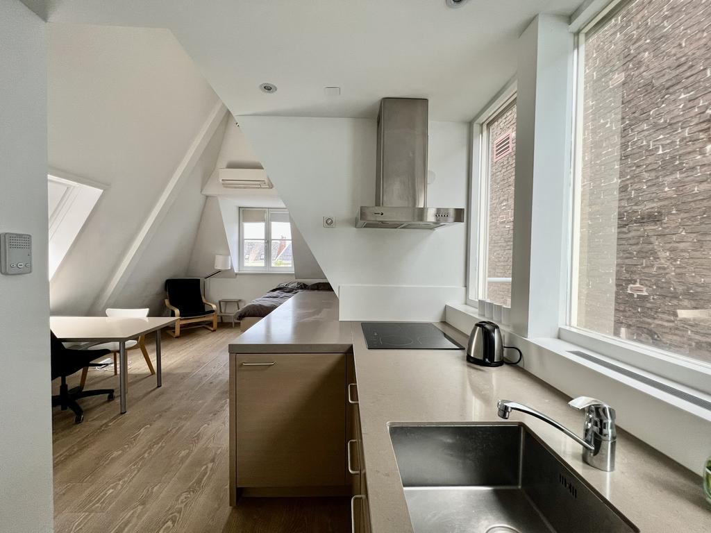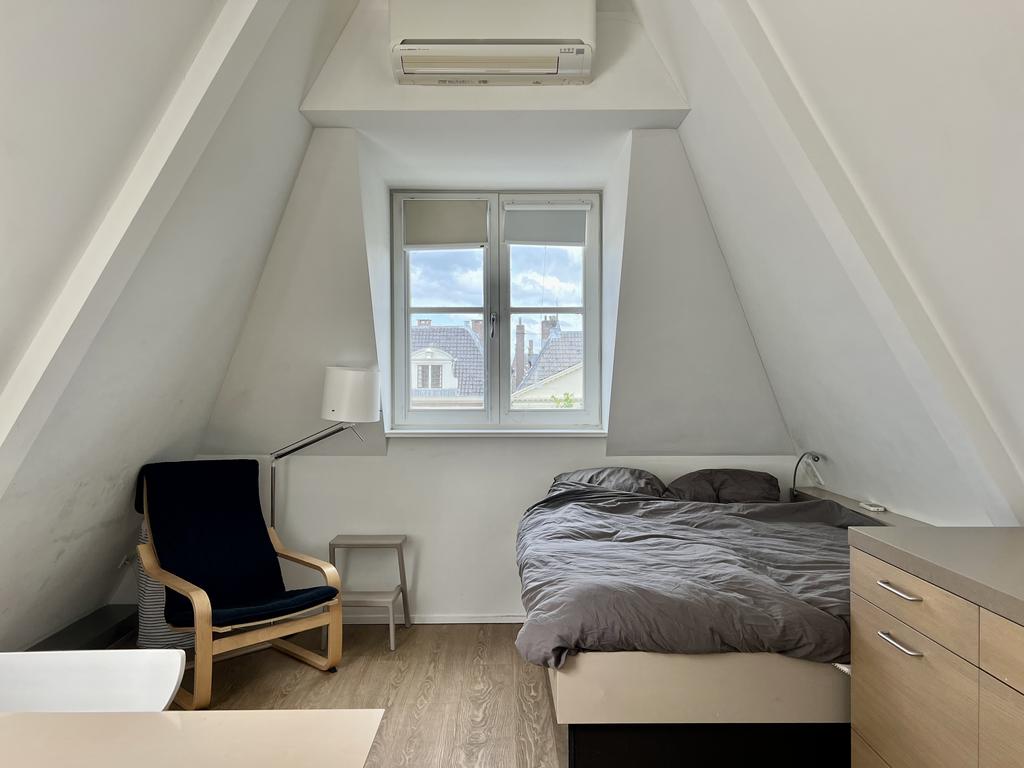 In this beautiful studio on the Rapenburg in Leiden, where functionality and comfort come together in a unique setting. This studio is designed to meet all your needs. Enjoy the convenience of a fully equipped kitchen in your own studio. The shared garden offers opportunity to meet others and have social interactions. The desk in the studio is strategically placed. There is also plenty of storage space under the comfortable bed. The studio has a modern private bathroom and comes with the use of a shared washing machine. In addition, this studio offers a small outdoor eating area.