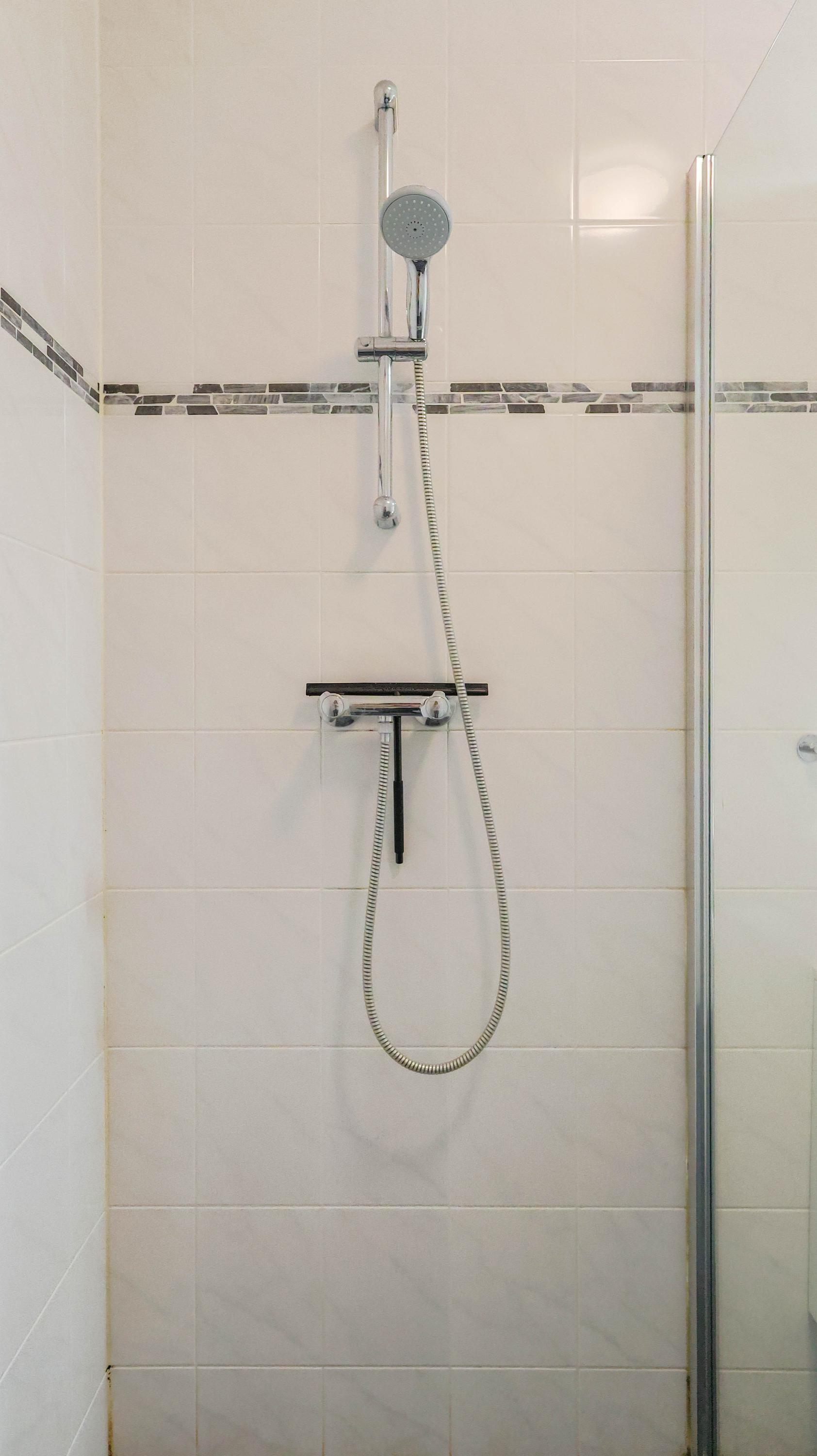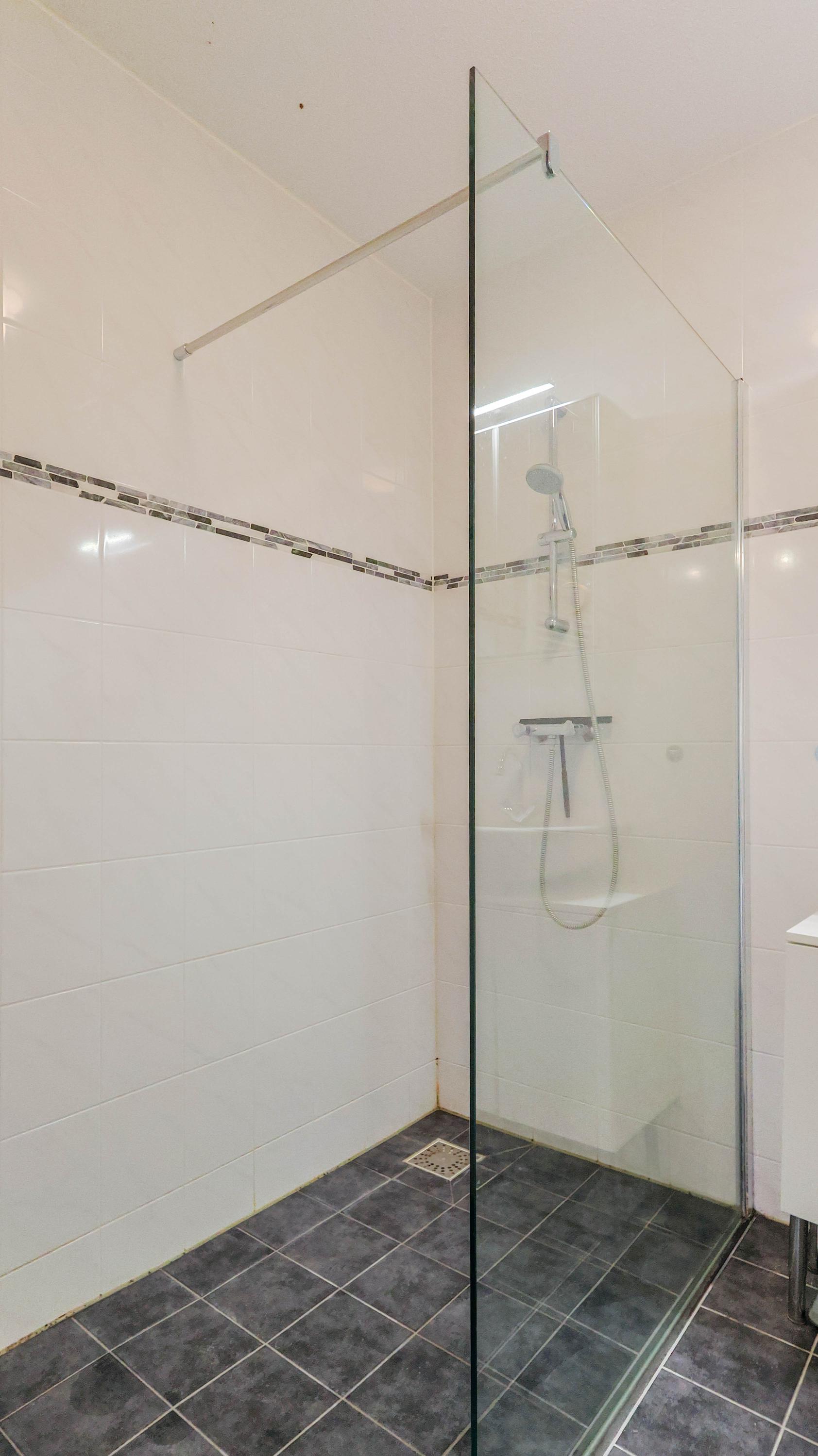 The master bedroom is generously sized and provides enough space for a large double bed and a wardrobe. The modern bathroom is fitted with a walk-in shower and washbasin. The apartment is rented including a private storage unit and a private parking space.
