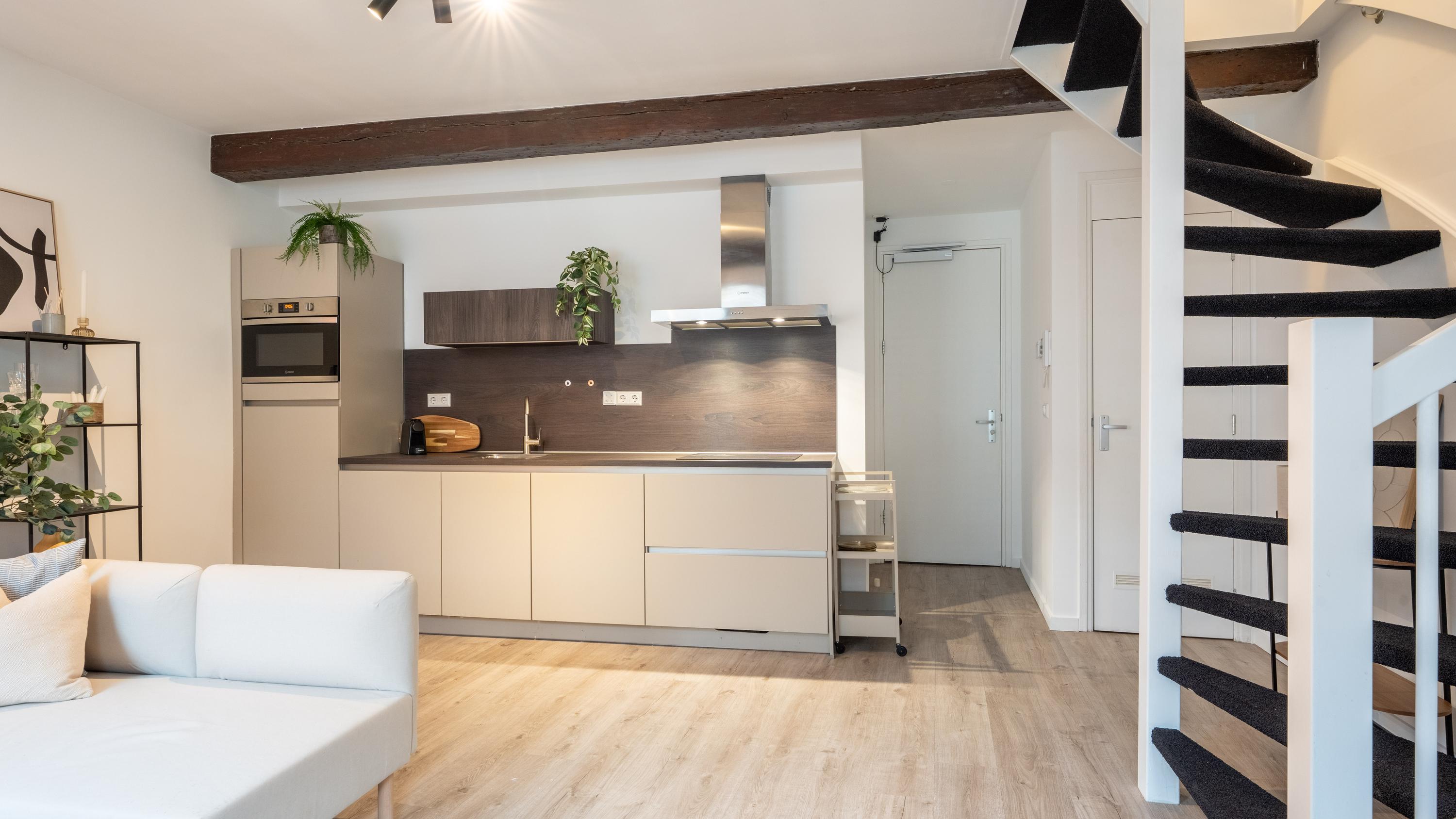 Dit volledig gerenoveerde en gemoderniseerde 2-kamer appartement op de begane grond biedt alles wat je nodig hebt voor een zorgeloos en modern leven. In 2026 is dit appartement helemaal vernieuwd en voorzien van de nieuwste gemakken. Met luchtverwarming, airconditioning en een strakke, moderne keuken compleet met inductiekookplaat, afzuigkap, koelkast met vriesvak en vaatwasser is het de ideale plek om na een drukke dag heerlijk thuis te komen. De lichte, neutrale laminaatvloer zorgt voor een frisse uitstraling en past perfect bij elke woonstijl.