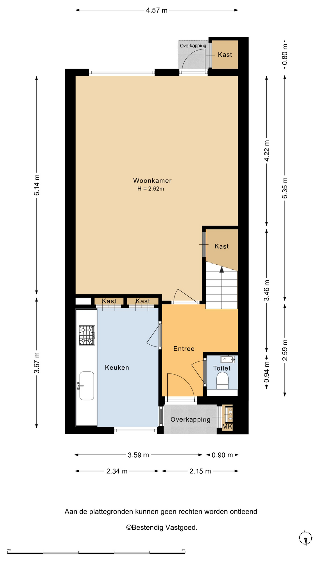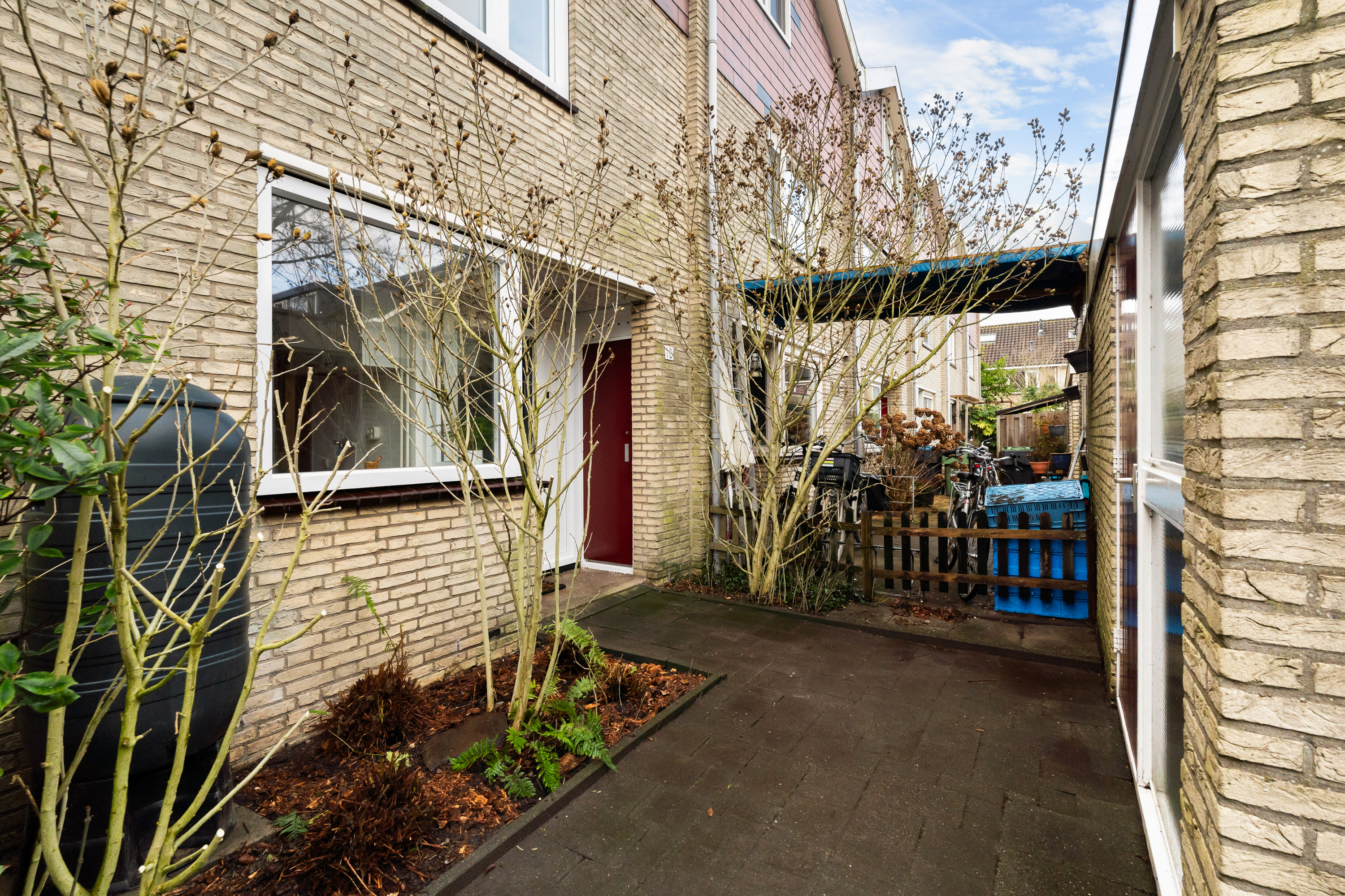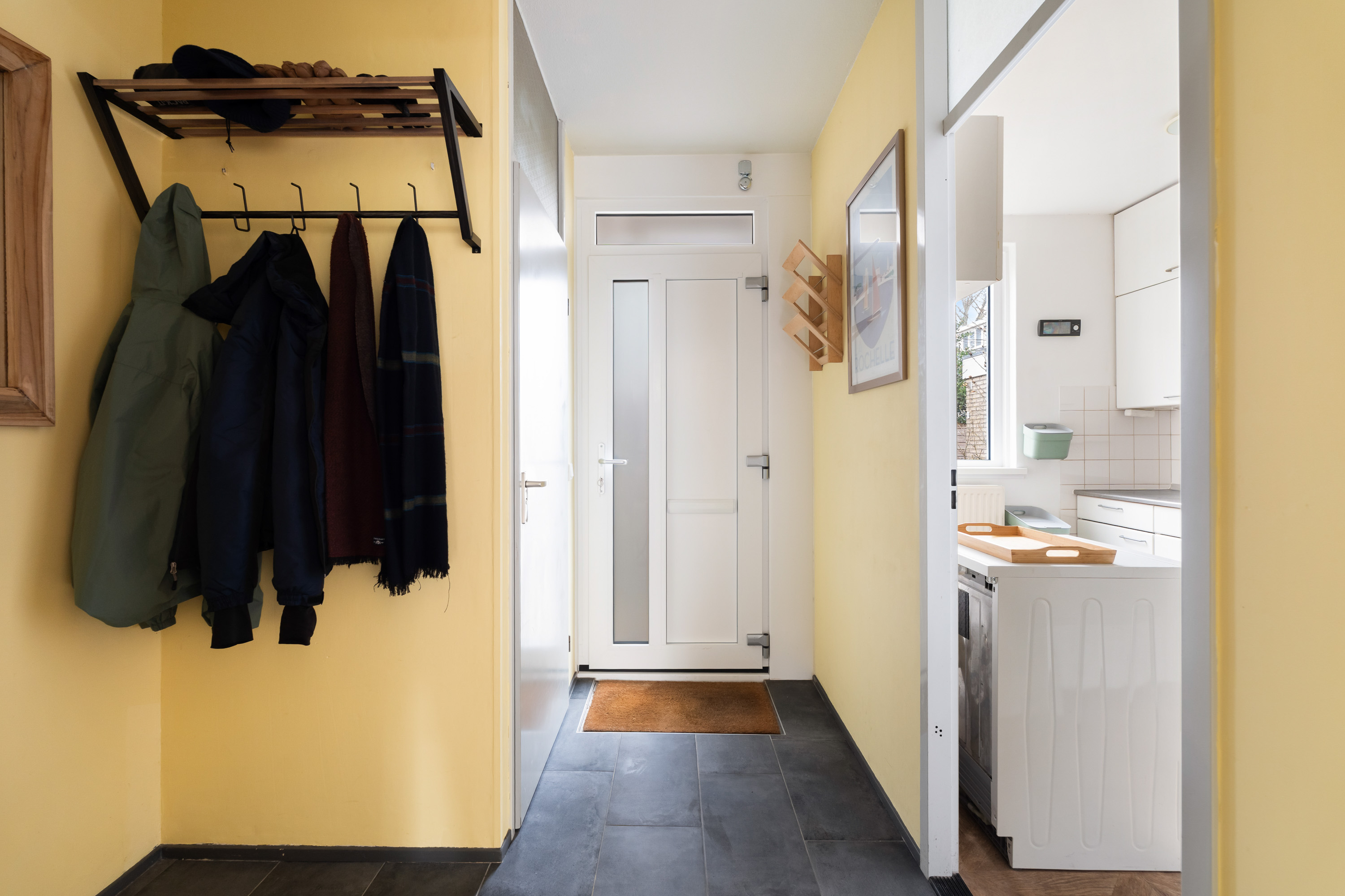 Vanaf de rustige, autoluwe straat is de entree van de woning door de aparte schuur onttrokken aan het directe zicht vanaf de stoep en geeft toegang tot de centrale hal waarvandaan het gastentoilet alsmede de keuken en woonkamer bereikbaar zijn.