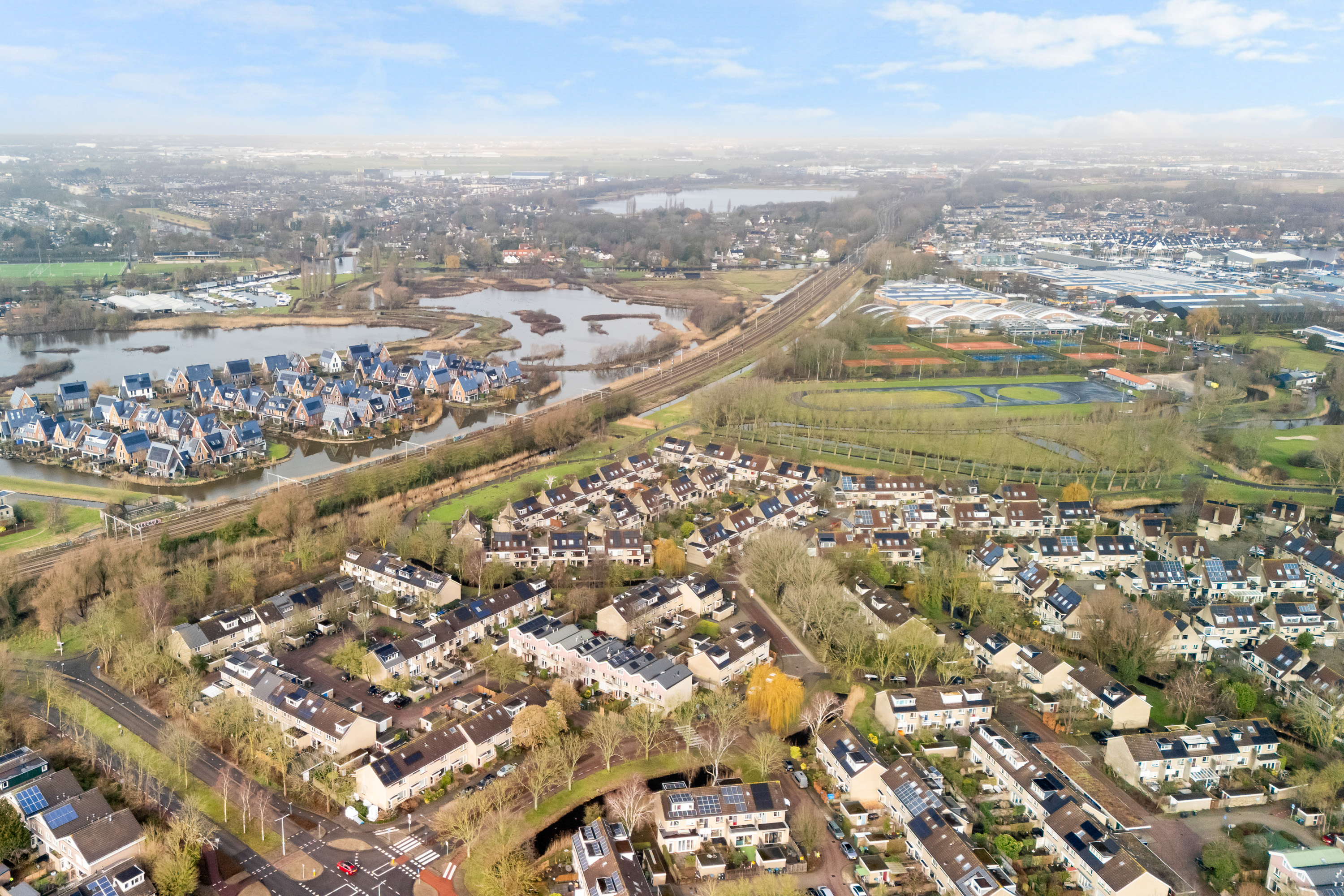 Zo is het centraal trein- en busstation op 10 min. fietsafstand. Dagelijks uitwijken naar bijvoorbeeld Den Haag, Amsterdam of de ‘bollenstreek’ kan makkelijk met de auto via de goed bereikbare uitvalswegen als de A4 en A44.